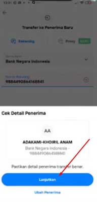 Setelah itu, akan muncul Kembali detail transfer dan jika semua data sudah benar maka kamu tinggal klik tombol Lanjut Transfer.