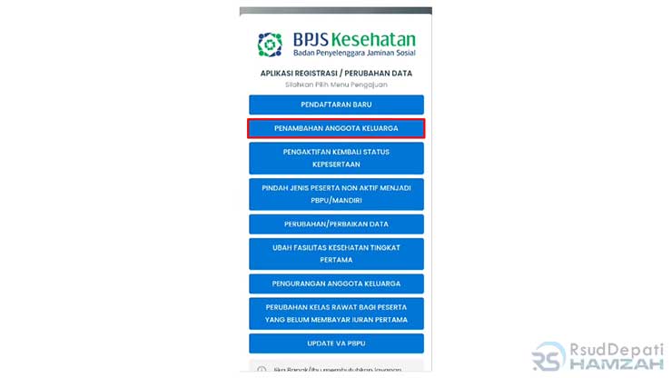 Pada tampilan selanjutnya kalian pilih menu Penambahan Anggota Keluarga. Kemudian pada daftar pilihan menu yang muncul, silahkan klik PBI APBN (Bayi Baru Lahir)