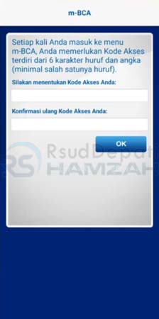 7. Kembali ke BCA Mobile, setelahnya masukkan kode akses baru serta konfirmasinya lalu tekan OK