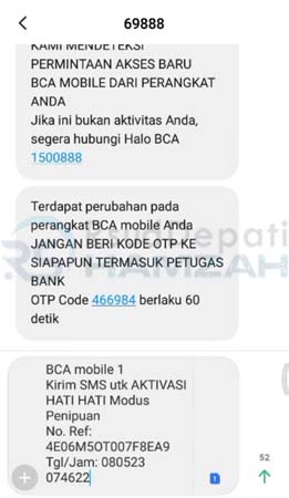 3. Kamu akan diarahkan ke menu SMS, silakan mengirimkan format pesan menggunakan SIM yang terdaftar di BCA