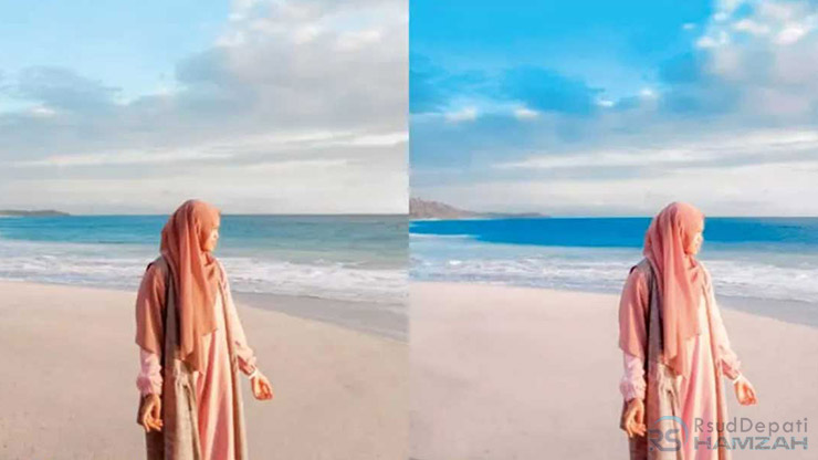 Jika kalian memiliki sebuah foto di luar ruangan atau outdoor terutama di alam yang cerah seperti pantai dengan warna air laut biru atau di daerah dataran tinggi dengan langit yang cerah.